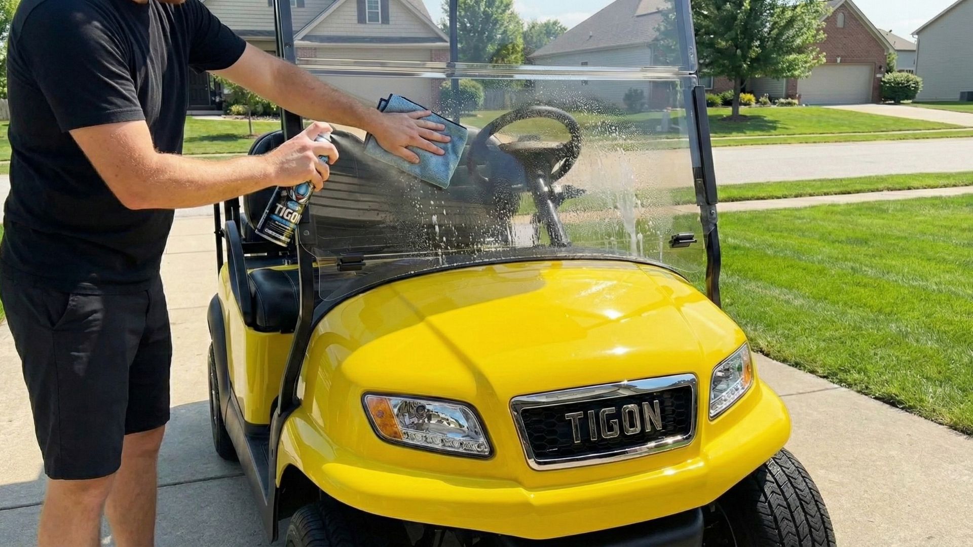 A golf cart plexiglass cleaner is a non-abrasive, ammonia-free cleaning spray formulated for acrylic and plexiglass windshields. Unlike glass cleaners meant for household windows or vehicles, plexiglass cleaners are engineered to clean without chemically attacking the surface.